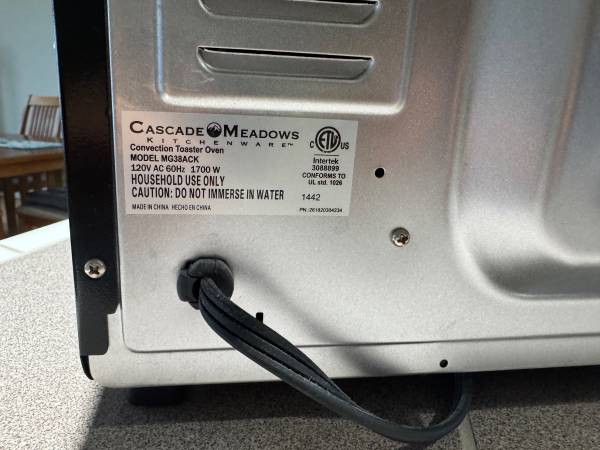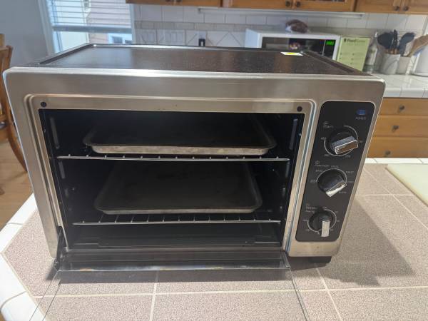 Cascade Meadows kitchenware convection toaster oven in like new condition. This unit bakes, broils, and toasts.Used only a couple times and comes with 2 racks, 2 baking trays and instruction manual....