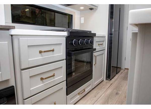 Residential large capacity oven with four racks and powerful cooktop burners means home cooked meals are on the menu -- on the road or in the campground