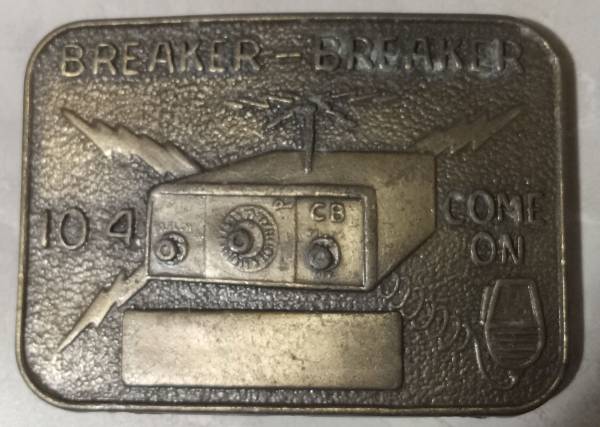 1970s Trucker Belt Buckle CB Breaker - Breaker 10-4 Come On 3.25" long Brass