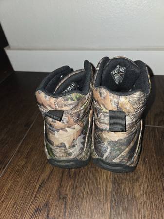 Cabelas insulated hunting boots, waterproof 900 denier design and lightweight. The color print is called TrueTimber Kanati Sized men's 11. Son used on an overnight trip but has outgrown the size. Like new. Just lowered price.