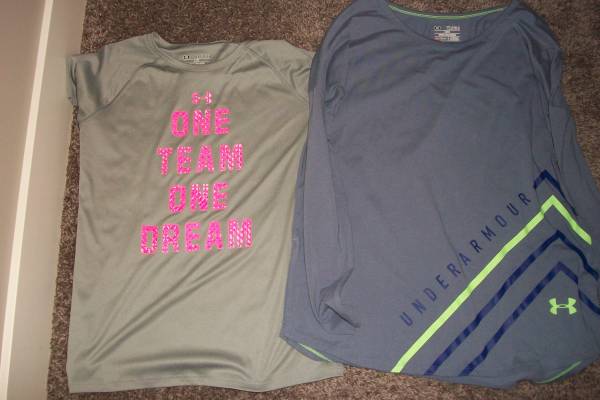 Under Armour Heat Gear -Some of them never worn -Youth xlarge (Small in women's) -5 T-Shirts -3 Long sleeve shirts -2 Pair of sweat pants -2 Pair of leg warmers -5 Under Armour Head Bands $75.00...