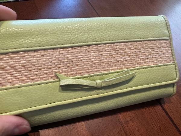 2. Green w Straw-Look accent - folds in 3, spacious. Also like new, only $10.