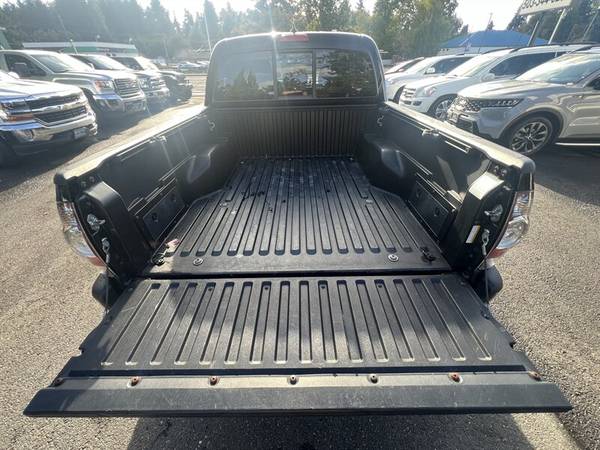 Black 2015 Toyota Tacoma V6 4WD 6-Speed Manual 4.0L V6 EFI DOHC 24V Backup Camera, Bluetooth, CARFAX BUYBACK GUARANTEE, 4WD, 130 Amp Alternator, 7-Pin Connector w/Converter, Chrome Grille Surround & Rear Bumper, Class IV Hitch, Color-Keyed Front Bumper & Overfenders, Cruise Control, Dual Sunvisors w/Mirrors & Extenders, Fabric Seat Trim (FQ), Front Fog Lamps, a Heavy-Duty Battery for those cold mornings, Leather-Wrapped Steering Wheel & Shift Knob, Metallic Tone Instrument Panel Trim, Privacy Glass, Remote Keyless Entry System, Sliding Rear Window, SR5 Badging, SR5 Package, Supplemental Oil Cooler, Tailgate-Handle Integrated Backup Camera, Towing Package, Trailer Sway Control, Variable Speed Wipers.VISIT OUR WEBSITE FOR VEHICLE AVAILABILITY.Awards: * JD Power Initial Quality Study (IQS) * JD Power Initial Quality Study (IQS), Vehicle Dependability Study (VDS) * JD Power Initial Quality Study (IQS), Vehicle Dependability Study * ALG Residual Value Awards, Residual Value Awards * 2015 KBB.com Best Resale Value AwardsNO SALES PRESSURE. WE ARE READY TO HELP! CALL (503) 344-6292 TO SPEAK WITH A TEAM MEMBER!!Reviews: * Choice of four-cylinder or V6 power; good four-cylinder fuel economy; serious off-road prowess; standard touchscreen; convenient size; strong resale value. Source: Edmunds * If you're looking for a compact pickup with a solid gold reputation for durability and reliability, the short list of choices will likely land you in one of the many 2015 Toyota Tacoma models. Off-roaders will appreciate the new TRD Pro Series. Source: KBB.com