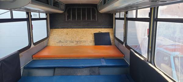 City transit bus that I planned to turn into a RV /tiny house. It has the seats pulled out. The Floor is carpeted. It went to the shop for a complete tune up, runs great, drives straight, and ac and heater work amazing. Rear doors have wheel chair ramp and air drop suspension. Sad to let it go. But my family wants to do something else.