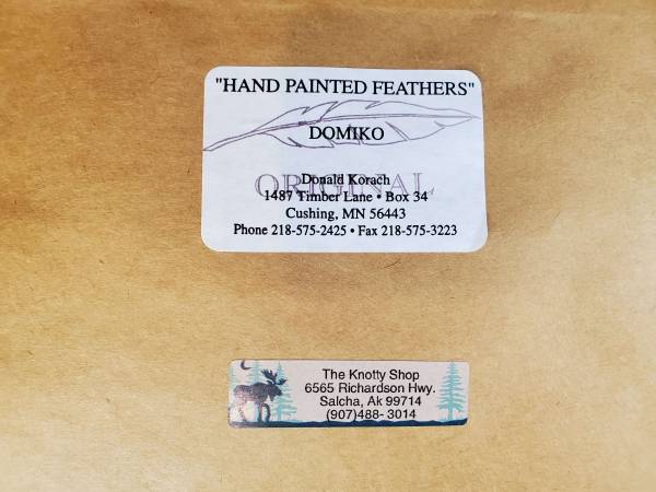Donald Korach is known for creating hand-painted feather art, often depicting wildlife such as eagles, hawks, and loons.