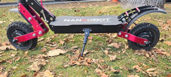 NanRobot Electric Scooter, high performance, foldable scooter. 2 available, 100 miles or less on each, speeds around 40 mph and 40 mile range on full battery. Ride is smooth and comfortable with front and rear spring shocks and hydrolic braking system. Headlight, taillight, horn. Call for more information. $1200.00 each.