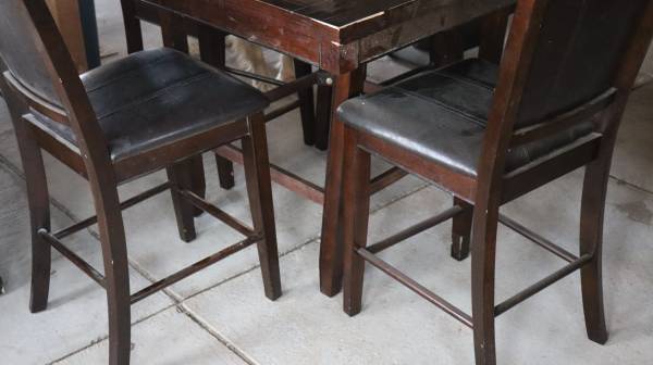 Still in good condition with lots of life left . There are a few bumps from moister as we have grand kids. Also had a cat at one time that liked to sink her claws into the chair material . Measures 4 ft x 4 ft with a lazy susan in the center. 36" high .