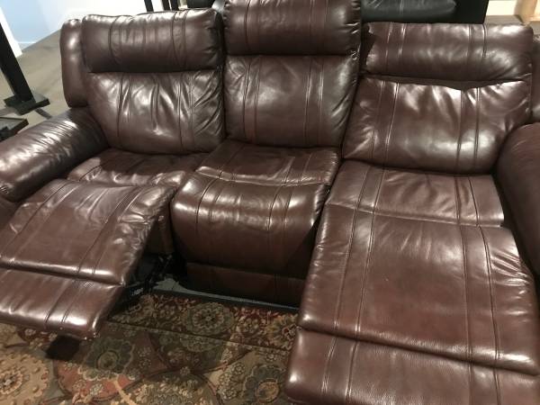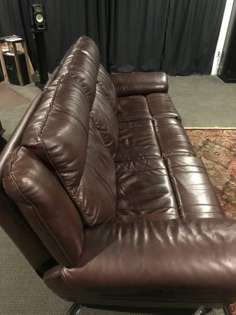 i have a like new leather couch i have in my theater room iam selling it to replace with a single theater chair everything works as it should this is really a nice couch measuements are length 91.5 in x 37 in wide x 39in tall arm rest are 12in wide like i said its like brand new paid $1800 dollars not sure if its real leather or faux i dont remenmber dont have paperwork anymore if you dont have a truck i can deliver if not to far 208 nine one 8 55five 8