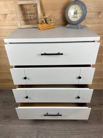 Organize your space with this 4-drawer vintage dresser, refinished with Melange Paints, Epiphany Ecru. Featuring deep drawers for ample storage and a sleek design that compliments any décor style.