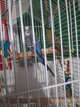 Young parakeets 5 to choose from 25 each. Or take all 5 and cage 175.