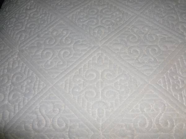 It has been on the bed in our spare bedroom for quite awhile. No spots or stains.