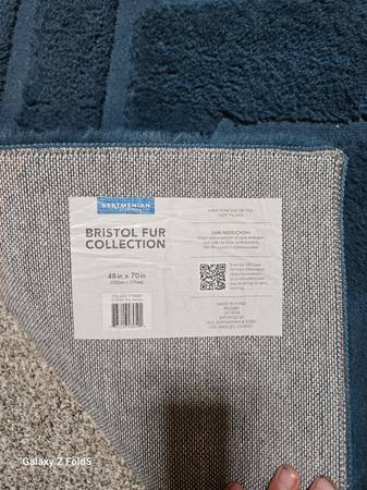 Brand new, never used. Super soft faux rabbit fur with a plush, cozy feel — about 1" thick. The geometric carved pattern adds just enough style without being too bold.