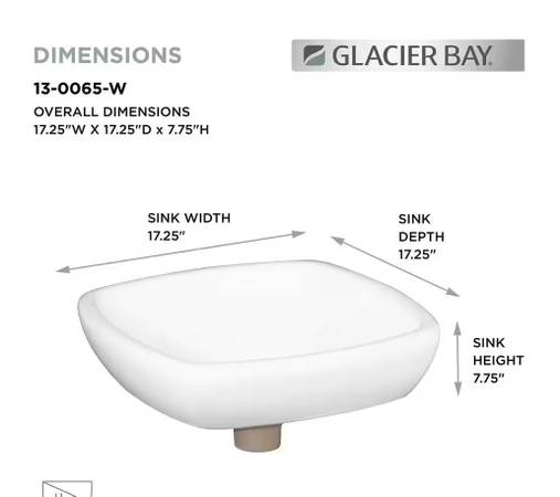 Overall dimensions are 17-1/4 in. W x 17-1/4 in. L with 7-3/4 in. D