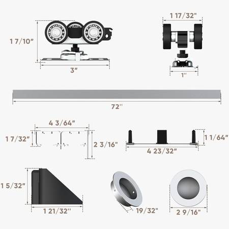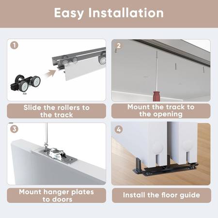 JUBEST 72" Bypass Sliding Closet Door Hardware Set