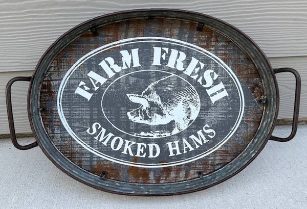 -Decorative Galvanized Serving Tray w handles - overall 14.25" x 20.5" x 4"H - New value $40. Asking only $15.