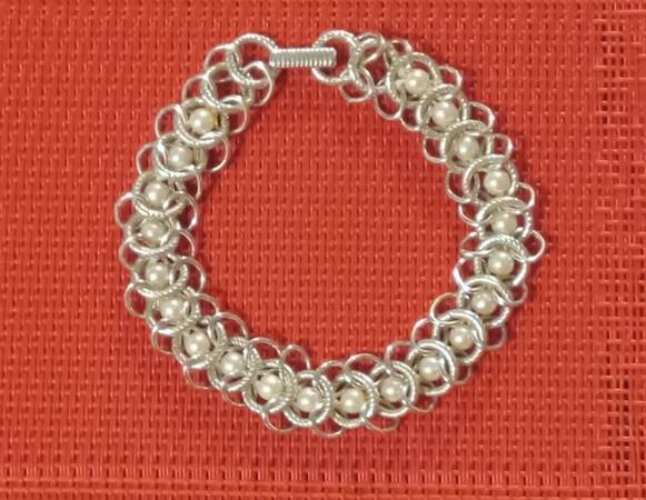 Vintage GOLDETTE NY Silver Tone Faux Pearl Ring Link Bracelet. Very nice!!