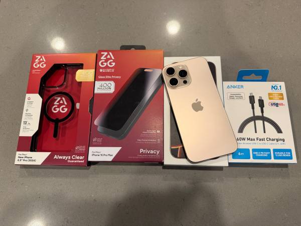 I am selling a like new Apple iPhone 16 Pro Max in Desert Titanium. This iPhone has 512GB of storage and is factory-unlocked, making it compatible with all carriers, including Verizon, AT&T, T-Mobile, Metro PCS, Sprint, Cricket, Straight Talk, and more.