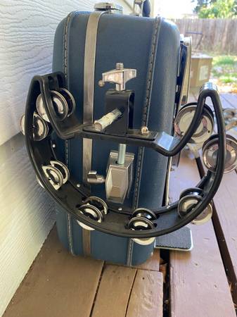 Sturdy vintage suitcase repurposed into a kick drum – deep, punchy tone with lots of character