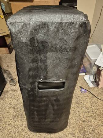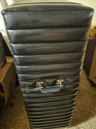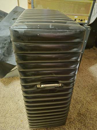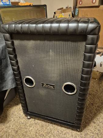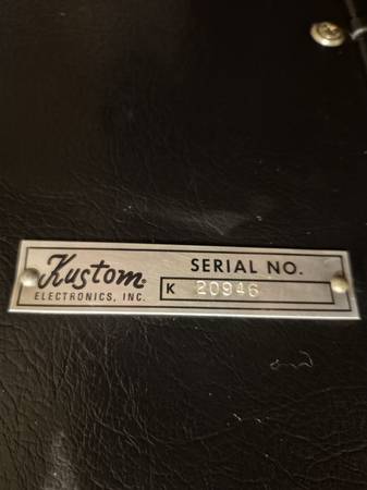 2 Kustom Black TUCK/ROLL SPEAKERS. Pair. 1 has a serial no.- 421A, 210,129 CHANUTE KANS Other does not. 1 has a cover, other does not. ThEY ARE A SET