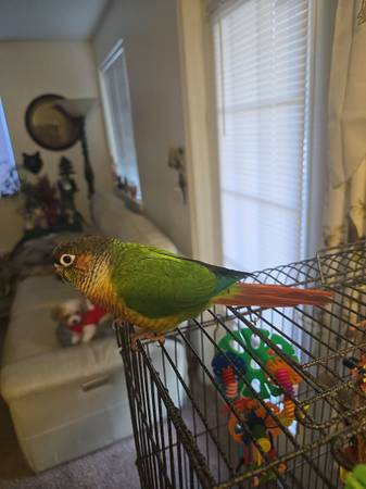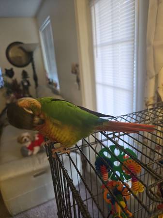 Yellowsided Greencheek Conure & Like New Cage---Talks (Nampa)