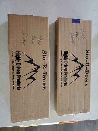 Two Wall Mounted Door Storage Racks. Fits Jeep Doors 1941-Present. Sto-R-Doors 150lbs Capacity. Made by Highly Driven Products. These are sold on Amazon for $67 apiece or $134 for two. This is for two mounts needed to store four doors. They are still in the box, never used. $80 for both.