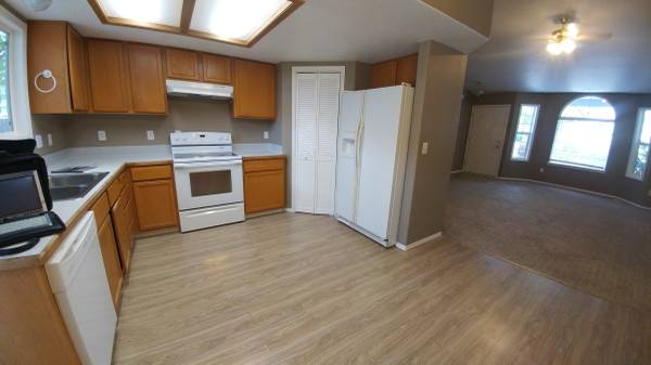 4 bed, 3 bath house, 1400sf, assigned shelves in pantry, linen closet, kitchen, garage.