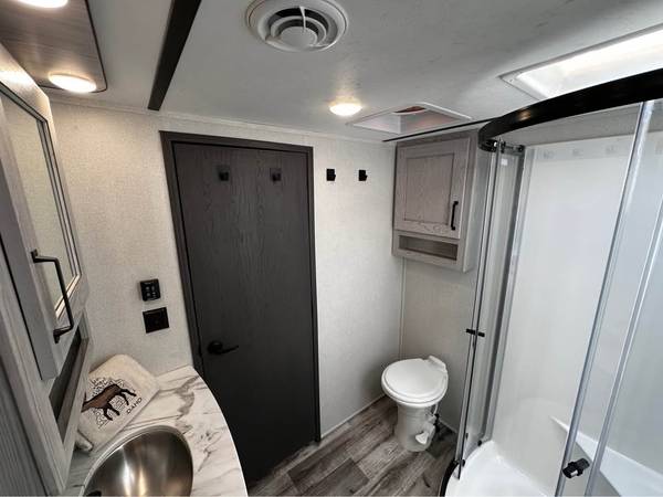Rear bunk room with half bathroom + loft overhead