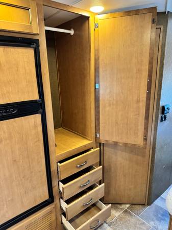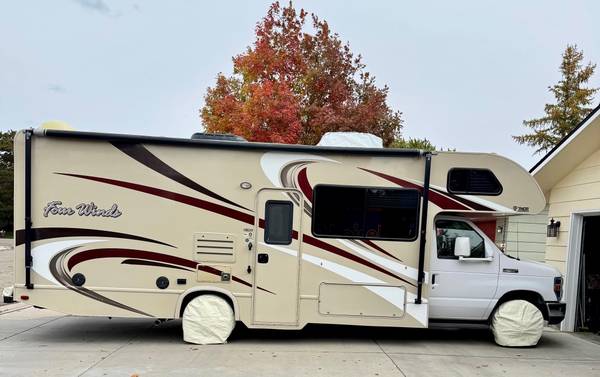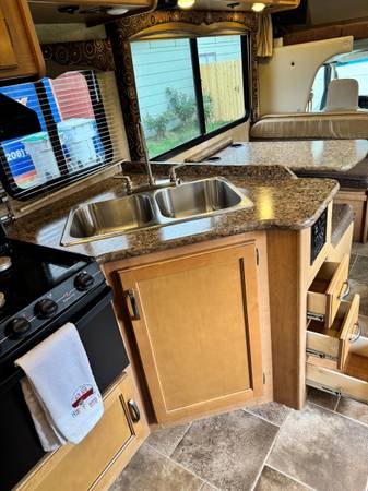 Our beautiful Class C motorhome is around 27.5 feet long with a slide-out. It is extremely livable; comfy.