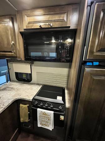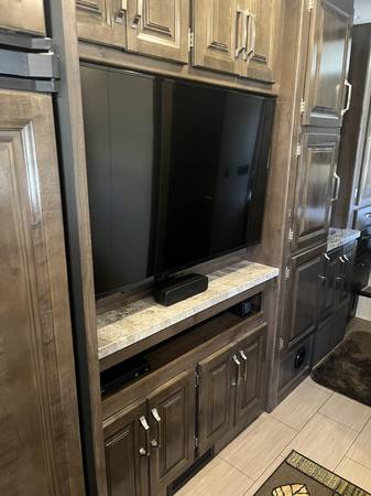 This isn’t the 30Z model with the decorative fireplace under the TV. Instead, this one features extra cabinetry, providing far more practical storage space for extended travel or full-time living.
