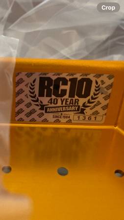 New opened box 40th Anniversary RC10 kit plus two Anniversary Pins. #1361 chassis sticker is affixed straight. All parts bags are unopened. Last photo shows a small amount of shipping damage to the box from Team Associated's lack of packing material. It's the crease above the "T" and a bit crumpled left of crease. Hard to capture with phone. Just know it is not a crisp minty box because of that area alone. Not interested in trades.