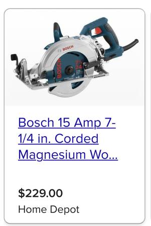 I am selling this brand new 7-1/4” Bosch worm drive saw as I am going for battery operated. These saws are for thicker materials to cut faster through them. Excellent saws.