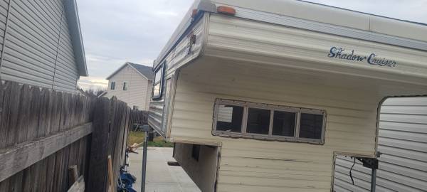 ~*~ Shadow Cruiser Truck Camper in Excellent Condition! * Low profile Pop up 8' Truck Camper * ~ Over the Cab Full-size Bed with storage ~ *** Dinette Seats with Table turn into a bed. *~ AC Unit is...