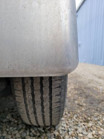 Cargo trailer with interior shelves, light, and exterior side rack , spare tire