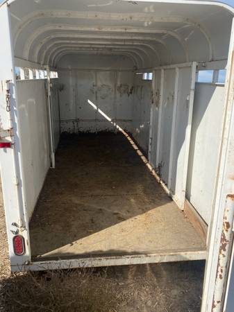1999 Stock Trailer 16' length. Center divider. Rear And side gate. Tires: ST225/75R15---6 lug steel wheel. Tandem axle. Spring suspension. 2 5/16" hitch. Electric brake on both axles. $4500 Text...