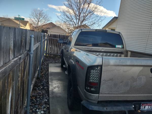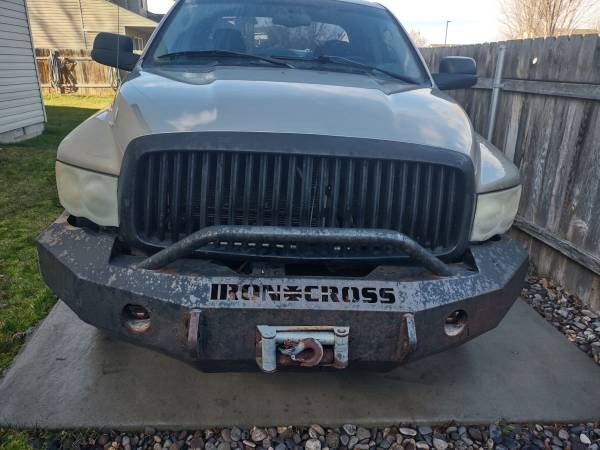 2005 Dodge Ram 1500 with 12,000 winch, 5.7 liter Hemi with a K&N cold air intake ,runs good, has a bully dog computer control thing. Iron gate bumpers. Previous owner said "deer are not a problem", (gross, but funny, he lived in Idaho city). Tons of storage, Sony head unit, Rockford Fosgate speakers. Rebuilt rear differential last summer. An extra set of barely used rotors.