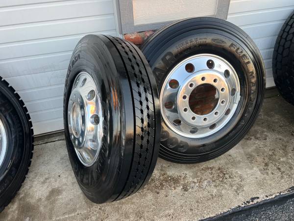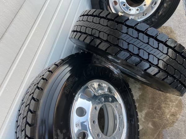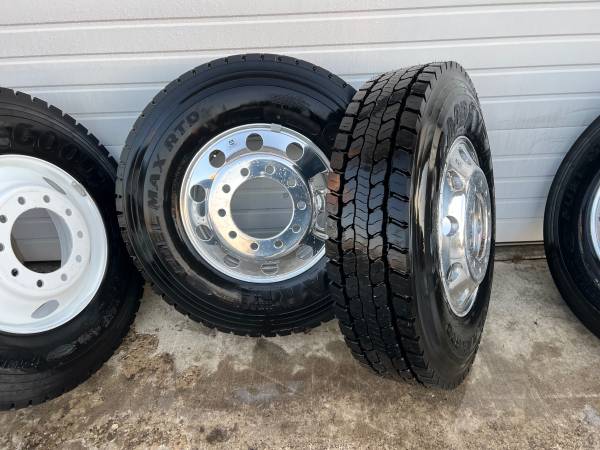22.5 Alcoa rims with Goodyear 16 ply tires brand new takeoffs factory mounted and balanced ready to bolt on